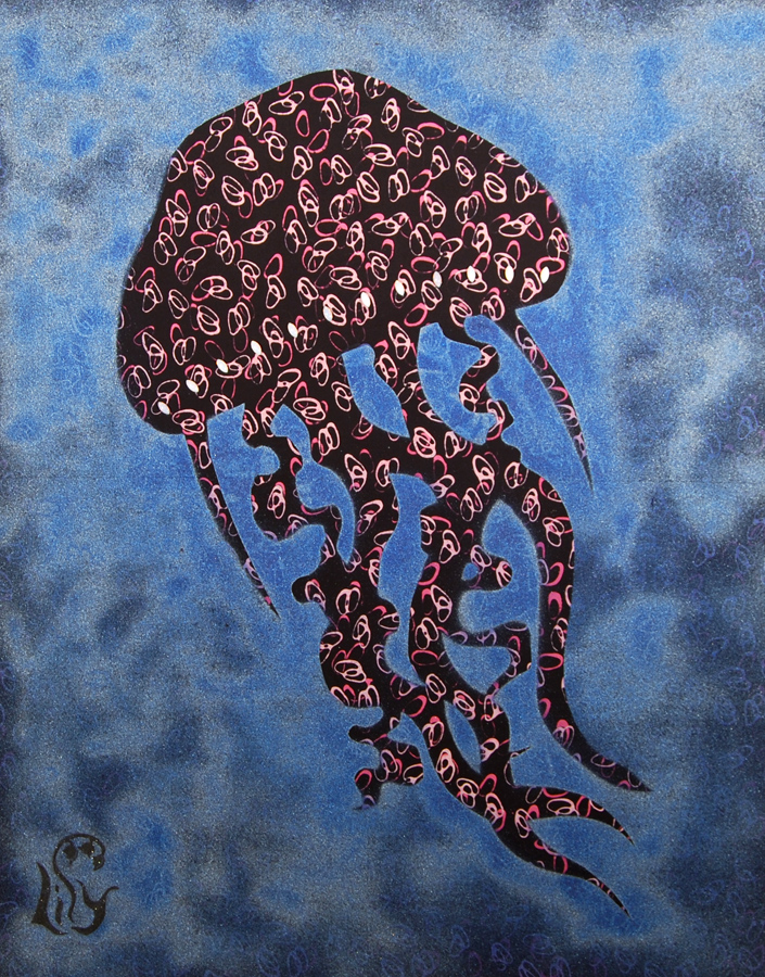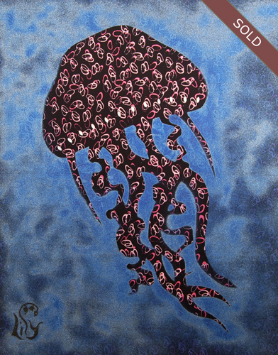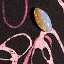 This lovely creature glimmers with vintage German Pinfire white glass opals, uncirculated old stock. The stones give off a watery bluish light that is impossible to capture in a photograph.