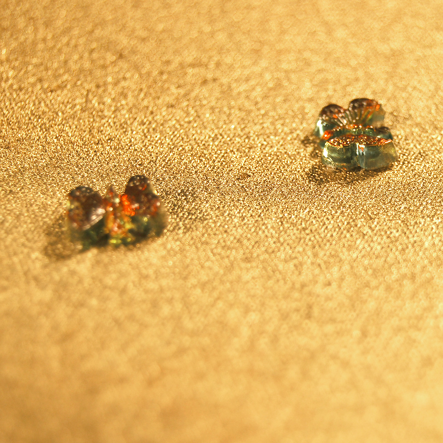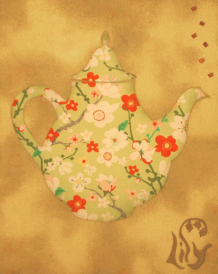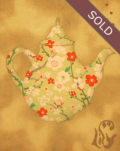 Volcano orange and purple glass butterflies flutter out of the spout of this playful teapot. These delightful butterflies are West German vintage and mirror finished to create an amazing play of light and color.